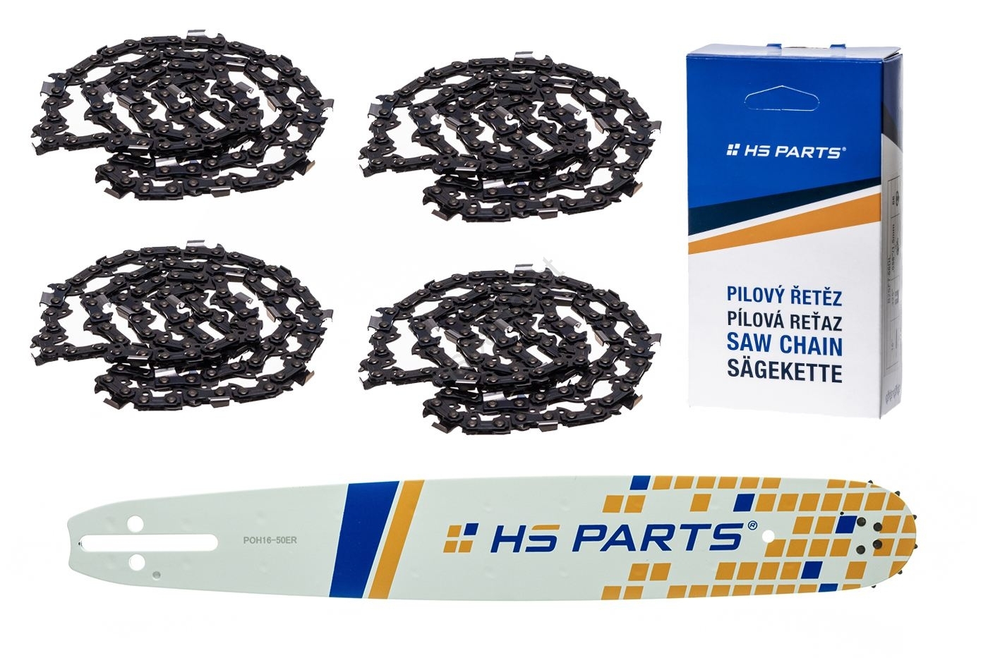 HS PARTS Gewerblich bietet Sägeketten mit Vierkantzahnprofil, mit Rundzahnprofil für Schneidebretter, Universalzahnprofil und als Neuheit eine Kette mit Hartmetallzahn an.