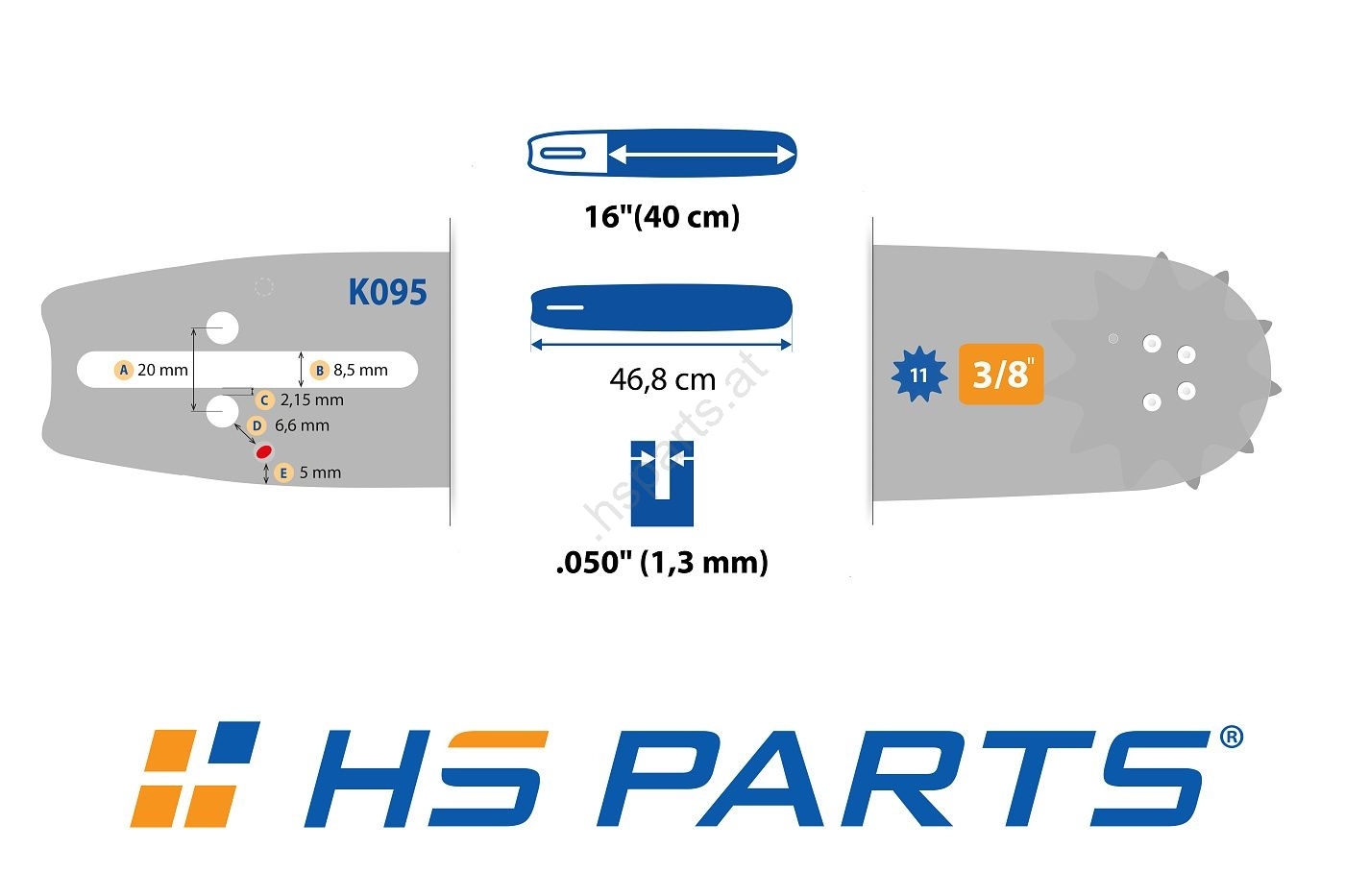 HS PARTS Führungsschiene 16" (40 cm) 3/8" .050" (1,3 mm) + Sägekette 60 Glieder Vierkantzahn für Husqvarna 246 254 262 345 357 455 460 555 560 Jonsered 2054 CS2260 Dolmar 111 112 115 PS540 Solo 613 614 650 Oleomac 162 956 962