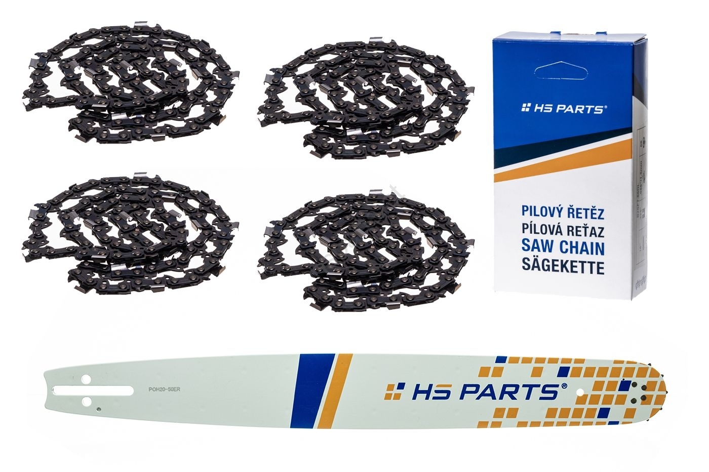 HS PARTS Führungsschiene 20" (50 cm) 3/8" .050" (1,3 mm) + 4 x Sägekette 72 Glieder Vierkantzahn für Husqvarna 246 254 262 345 357 455 460 555 560 Jonsered 2054 CS2260 Dolmar 111 112 115 PS540 Solo 613 614 650 Oleomac 162 956 962