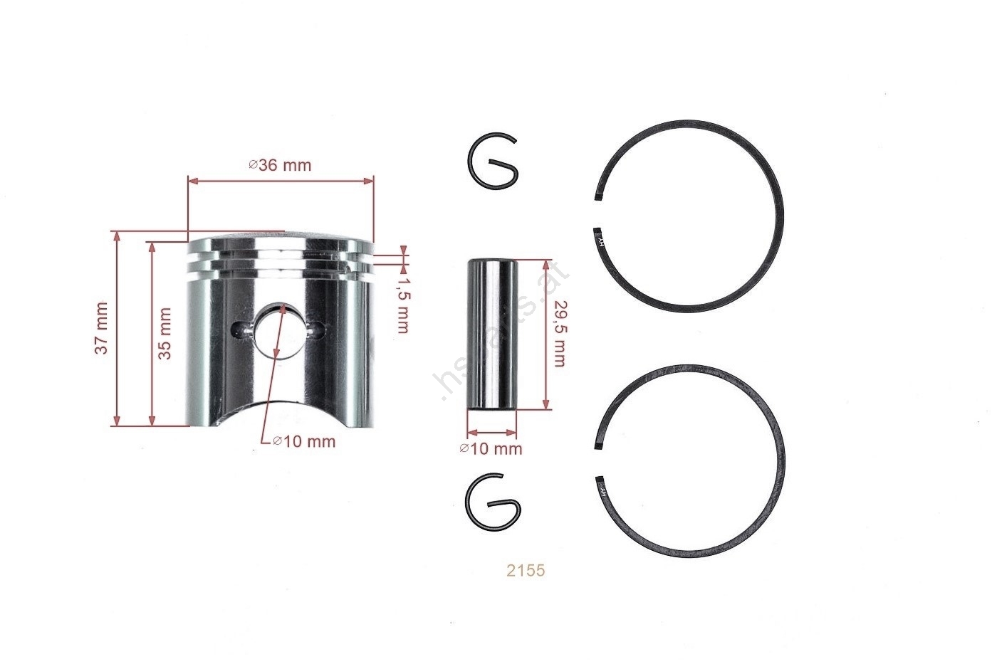 Packungsinhalt: 1x Kolben, 2x Splint, 2x Kolbenring, 1x Bolzen