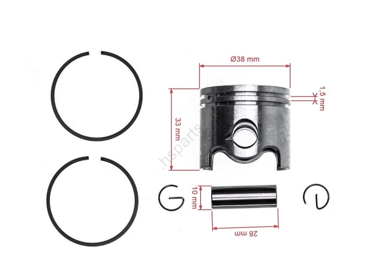 Produktbeschreibung und Spezifikation: HS PARTS Kompletter Kolben für Stihl FS160 FS180 FS220 FS220K FS280 FS280K FS290 FR220 38 mm (OEM 41190302003)