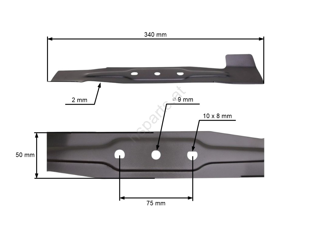 Produktbeschreibung und Spezifikation: Mähmesser 34 cm (13") für Leroymerlin Sterwins 340-EP-3 Elektrorasenmäher (OEM 45267803 26300297601)